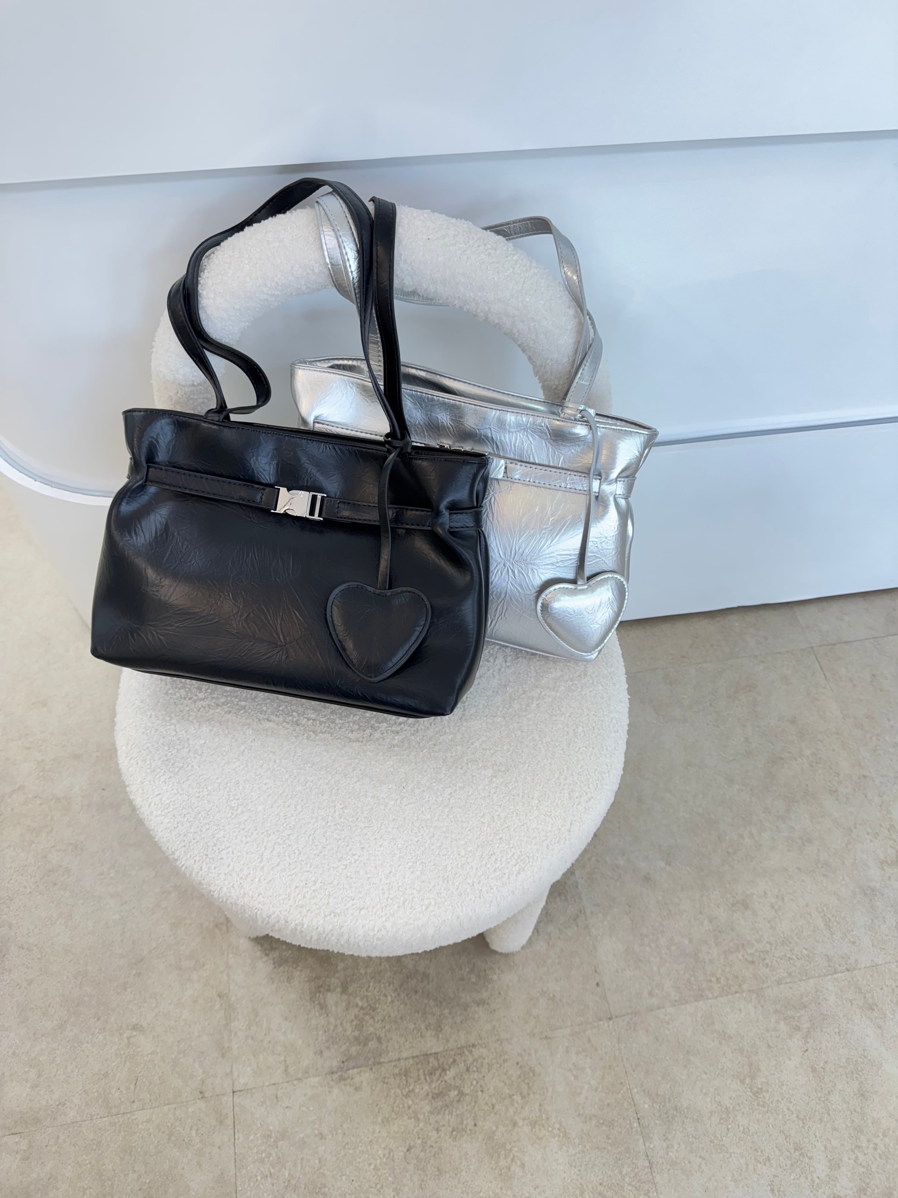 〈カラー〉ブラック / シルバー ♡がついていて可愛いトートバッグ。 中もしっかり入ります。