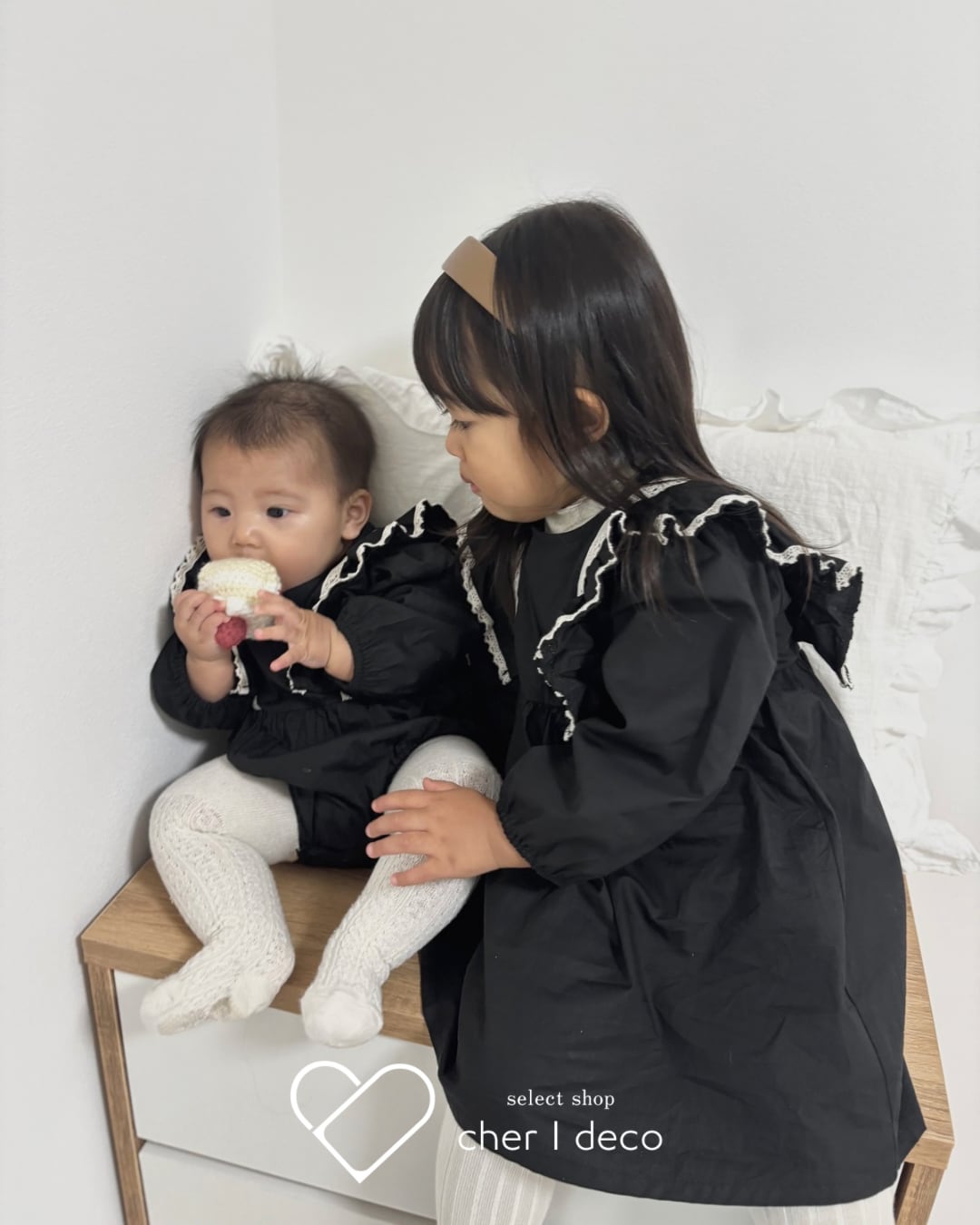 おそろいのロンパースとワンピースで